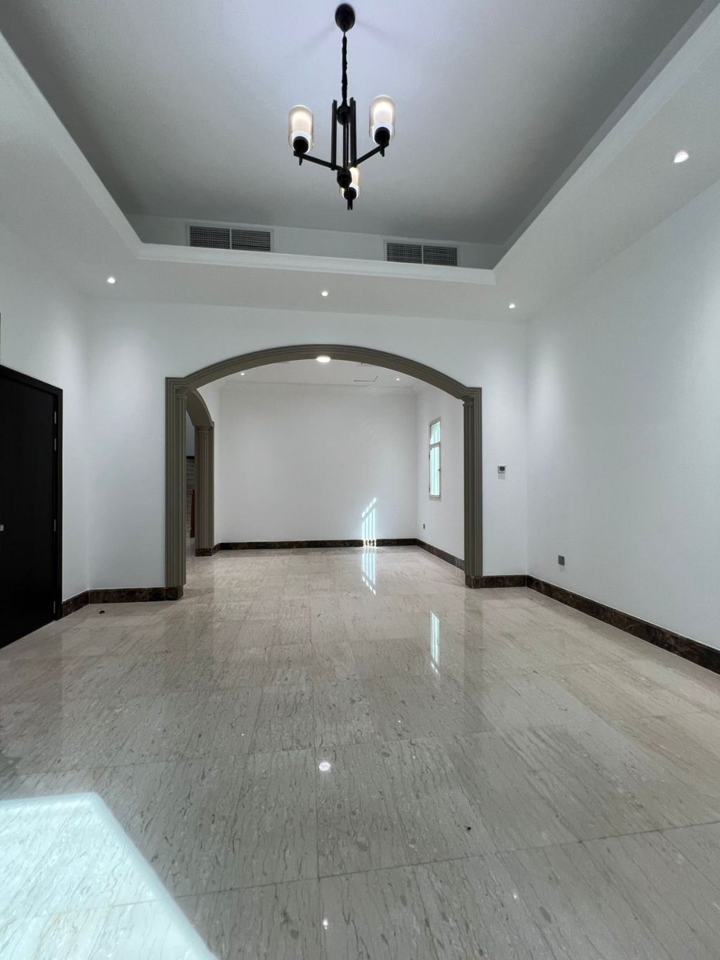 Seize the opportunity Brand - new villa in Al Fisht area, 5 bedrooms + 2 living rooms + 2 receptions, 5 bathrooms with super - lux finishes, very spacious. rent AED170000/ year, 4 installments, prime location near essential services