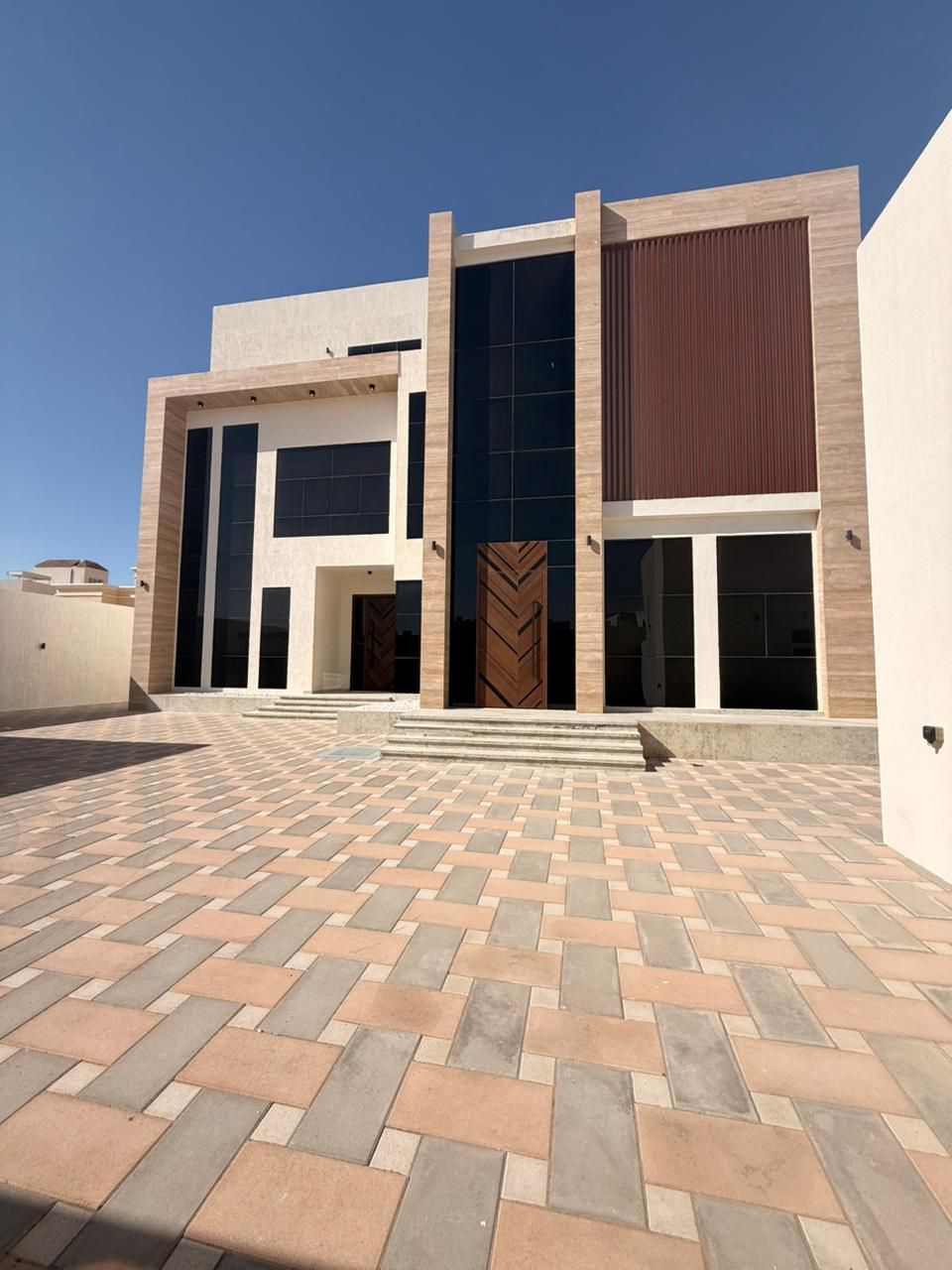 فيلا مودرن للإيجار في مدينة الرياض موقع مميز قريب من الخدمات تشطيب سوبر ديلوكس تكييف مركزي مع سبليت تتكون من 7 غرف ماستر غرفة مجلس ضيافة رجالي مدخل خاص مع غرفة طعام 2 صالة عائلية مع مغاسل وحمام مطبخ رئيسي غرفة عاملة منزلية غرفة غسيل ستور حوش واسع مظلاه سيارات المطلوب للإيجار 23000 درهم سنوي ش