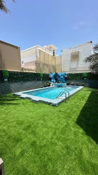 Villa for rent in Al Darar. Villa area 4500 square feet. The Villa consists of 3 master bedrooms, a living room, a fully equipped kitchen, and a maid's room with a private bathroom. The Villa has a swimming pool and a private garden. The Villa is next to a public park. rent 115000 dirhams