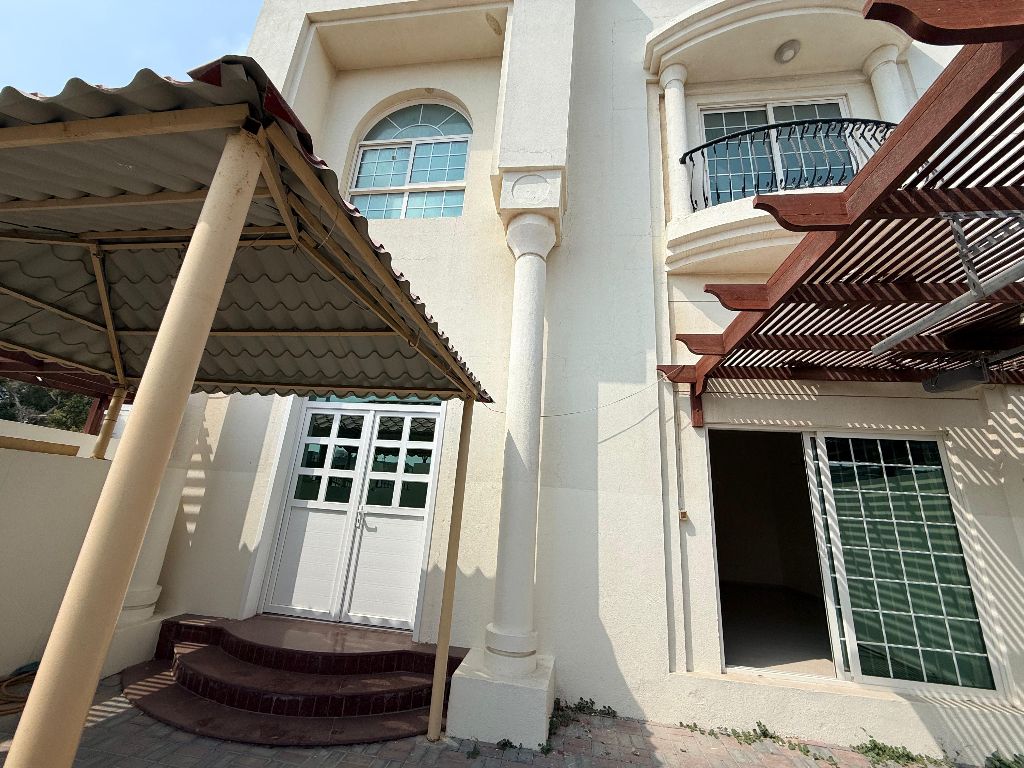 Most luxurious villa in a family compound, two floors in Sharqan, Sharjah, modern finishing with gym, swimming pool and gardens + open view + balcony + spacious living hall + central AC + 4 bathrooms + master maid room + main kitchen and prep kitchen + area about 3000 SqFt with easy payment options