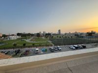 Largest villa for annual rent in Sharjah, residential/ commercial area, Al Fayha, directly opposite Al Fayha Park. Features include living room and Majlis, 5 bedrooms (2 master bedrooms) 3 balconies, large kitchen, 5 bathrooms, laundry room, large rooftop suitable for a Majlis, garden view, and a covered courtyard