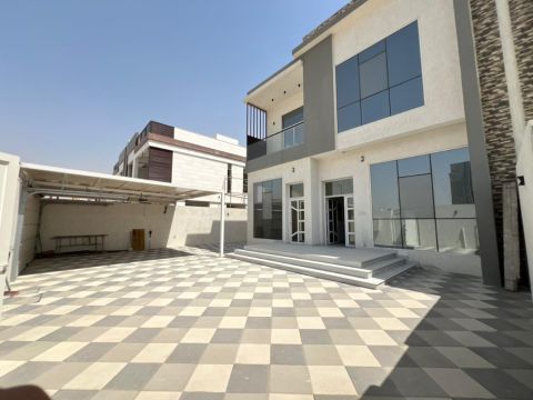 Area 5000 SqFt Brand New 2 Floors First Tenant Modern Finishes Central AC Central Gas Smart Home System Ground Floor Living room with guest bathroom Majlis with private bathroom Laundry room 1 Master bedroom Fully equipped kitchen + storage Maid's room with attached bathroom First Floor 4 Master bedrooms Balcony Parking Covered indoor garage for 2 cars Outdoor parking for 2 cars Additional