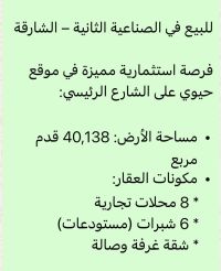 فرصة لاستثمار في الصناعية الثانية في الشارقة مستودعات بمساحة أرض 40138 قدم مربع بموقع مميز جدا بدخل جيد