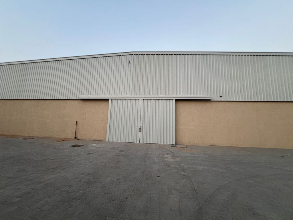 Industrial Yard & Warehouse - Al Saja’ Sharjah 24500 SqFt yard with 11000 SqFt warehouse, 3 offices, 2 showrooms, 2 bathrooms, and 180 kW electricity. Wide yard for operations. Price AED1350000 4 cheques Al Ekhtiyar real estate