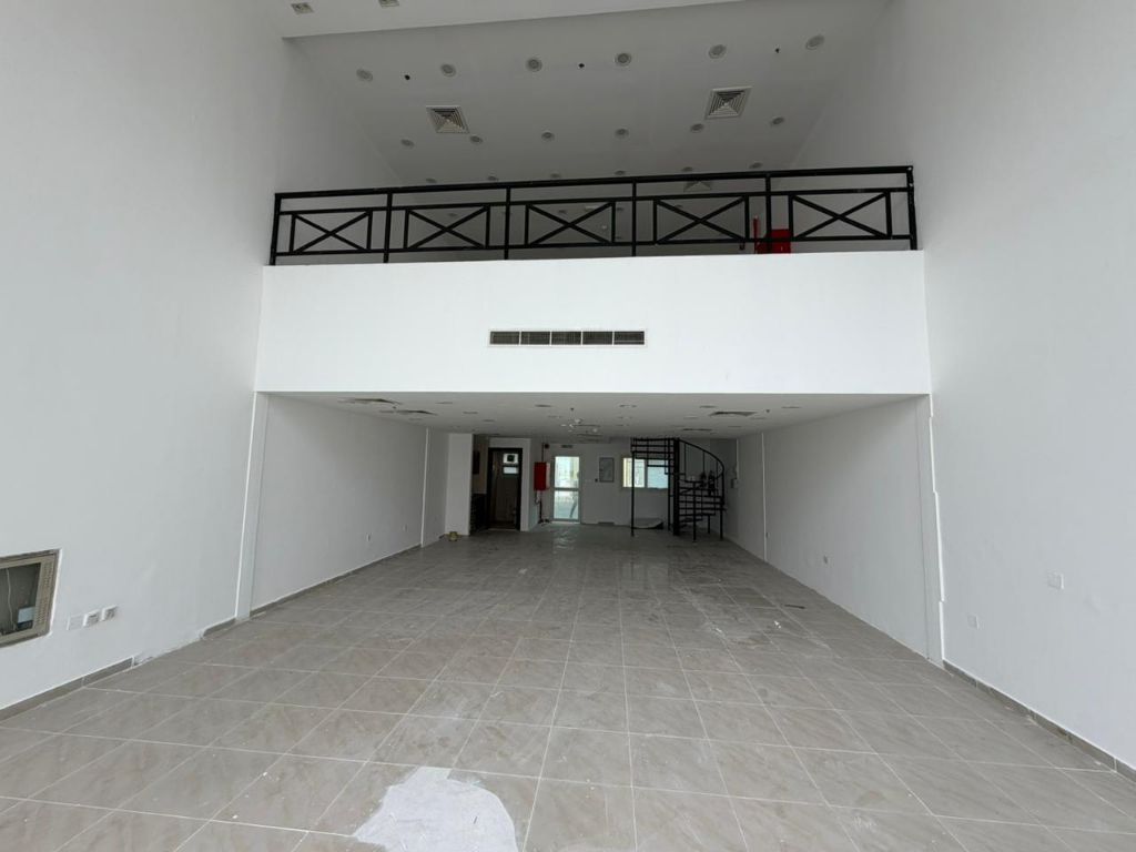 Commercial showroom for rent in Industrial Area 18, Sharjah. A prime location on a main street, offering excellent visibility for your business. The 2500 SqFt space includes a mezzanine and is suitable for various commercial activities. It features a bathroom, a preparation kitchen, and a dedicated loading and unloading area behind the showroom for easy access. Annual rent is only AED100000, payable