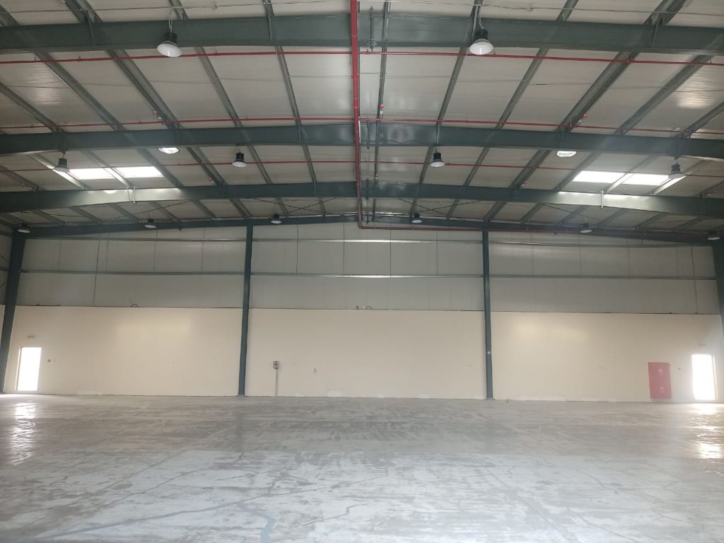Factory/ Warehouse for rent in Al Sajaa for rent in Al Sajaa - 24500 SqFt compound with a fully equipped 11000 SqFt warehouse, including 3 offices, 2 bathrooms, a kitchen, an electrical room, a telephone room, a waste room, and a complete fire system. It also includes 2 serviced shower rooms and 2 bathrooms. Electricity is supplied by a 224 kW system with a factory - grade distribution network. Ideally