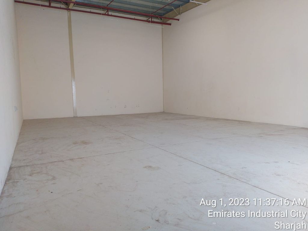 Warehouse for rent in Al Sajaa Industrial Area, 2500 SqFt, 15 kW electricity. Price AED125000. Spacious