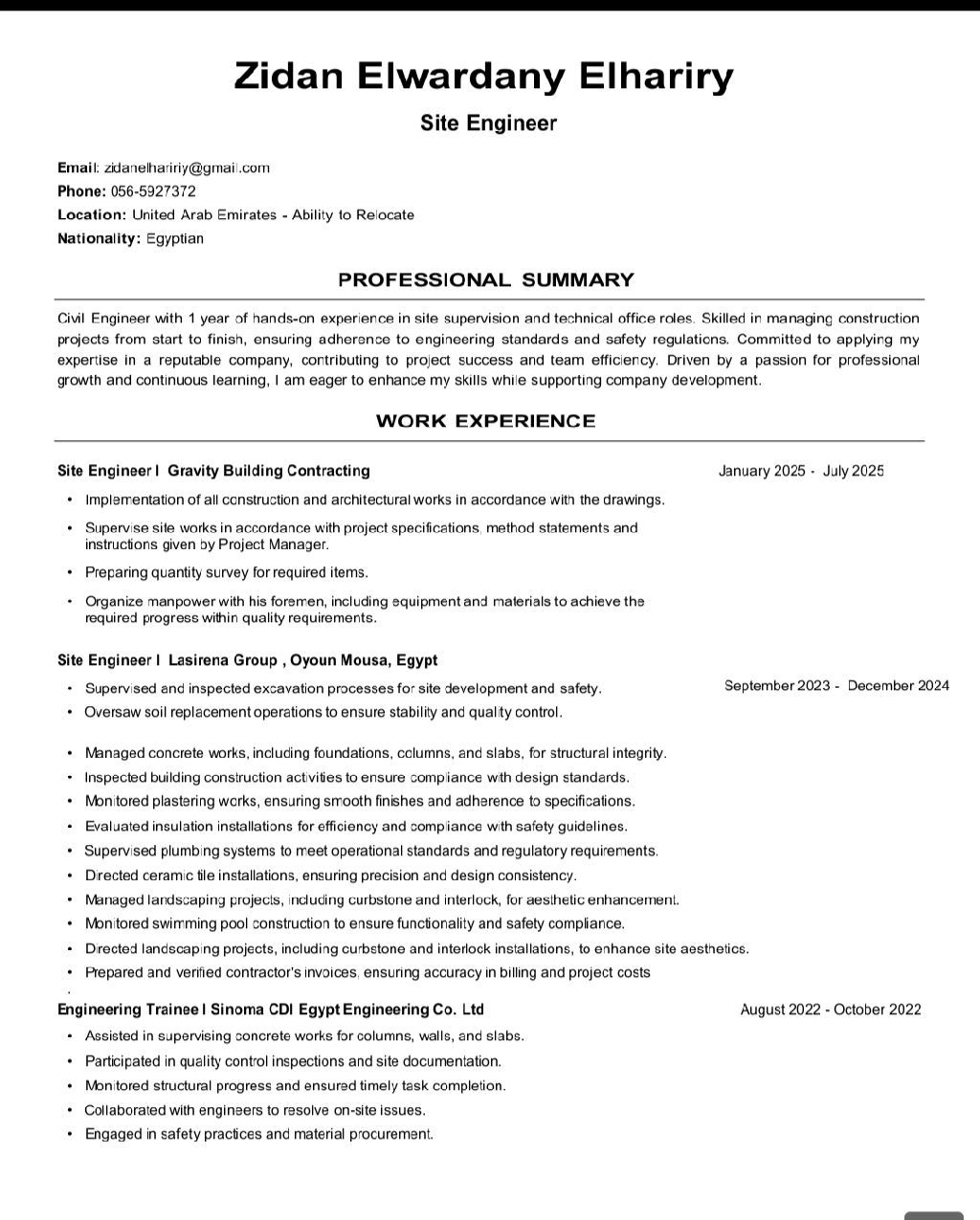 أنا مهندس مدني موجود ب دبي بدور على فرصة شغل أن امكن فرصة شغل قدام حضرتكم وجزاكم الله كل خير ودا أل CV بتاعي. للاطلاع عليه
