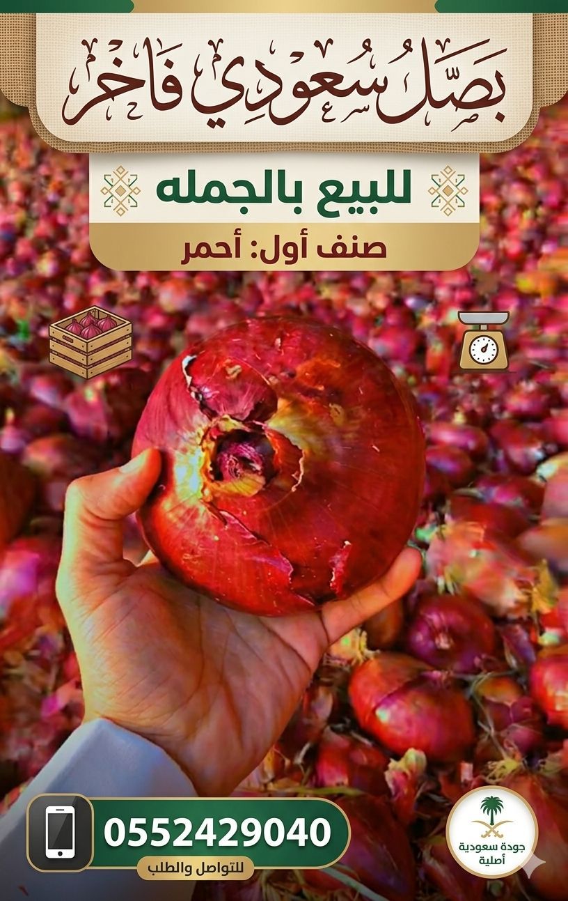وصلت الآن شحنات ضخمة من البصل البلدي الفاخر (ميكس بين الأحمر والذهبي) بأفضل سعر جملة في السوق أشتري من عندنا خزين ممتاز قشرة سميكة وناشف تماما، يعيش معاك أطول فترة وما بيخرب. أعلى جودة فرز أول، مقاسات موحدة، خالي من العيوب، نظافة مية كميات وأسعار لا تنافس أسعارنا حصرية لتجار الجملة والمطاعم، وكل ما تزيد الكمية يقل السعر