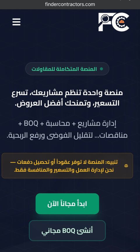للبيع منصة تكنولوجية متخصصة للمناقصات والمقاولات تتيح طرح المناقصات واستقبال عروض الأسعار مباشرة من المقاولين الى أصحاب المشاريع، مما يسهل التسعير ويرفع كفاءة السوق. تشمل المنصة نظام إدارة مشاريع للمقاولين - نظام محاسبي - صلاحيات متعددة (إدارة المنصة / شركات المقاولات) امكانية انشاء موظفين لكل شركة ولإدارة المنصة - نظام اشتراكات (باقات) السعر 150000 (غير قابل للتفاوض) يشمل دعما كاملا لمدة سنة