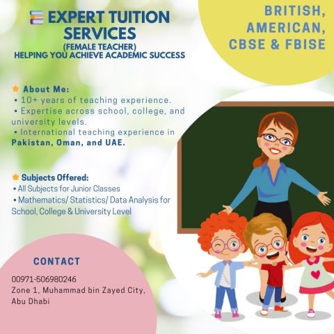 A qualified teacher with Masters Degree with 7 years teaching experience of UAE is available for teaching from Grade 1 to Grade 10, specialized in Mathematics, English, Science, Physics & Chemistry for British, American, CBSE and Ministerial Curriculum. One to One Private & Online sessions are available. First class will be free. Feel Free to contact by WhatsApp & Phone Call