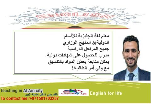 معلم انجليزي متخصص وحاصل على الماجستير خبرة في المناهج الدولية ويمكن تدريس المناهج الوزارية مع متابعة بعض المواد
