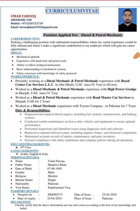 Khaled Salah Barham, Plumber, Abu Dhabi, UAE, Professional Summary A highly experienced plumber with over 13 years of experience in installing, maintaining, and repairing plumbing systems, including water supply networks, drainage systems, pump rooms, water tanks, swimming pools, fountains, and high - level and cleanout work. Skilled in reading technical drawings and troubleshooting l