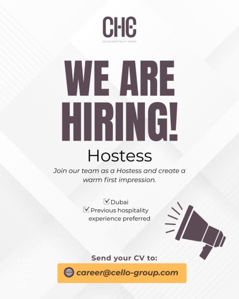 We are looking for 5 Hostess to join Cello Restaurant in Dubai located at Sheikh Zayed Road. high competitive salary + Visa + Food + incentive and Tips