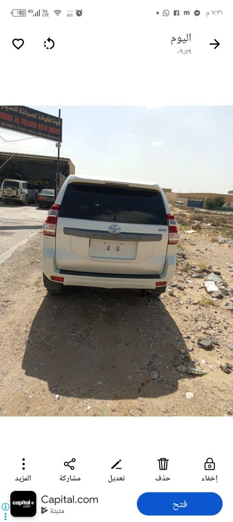 سيارة لاند كروزر GXR موديل 2021 من توكيل الفطيم، مواصفات كاملة مع فتحة سقف وتشغيل بصمة، دفع رباعي، حساسات أمامية وخلفية، رادار، مثبت سرعة. الجير والشاسيه والمحرك بحالة ممتازة. الممشى الحقيقي 110,000 كيلومتر. جميع المحركات والتكييف بحالة ممتازة. السيارة جاهزة ولا تحتاج إلى أي شيء. السعر المطلوب 180,000 درهم إماراتي.
