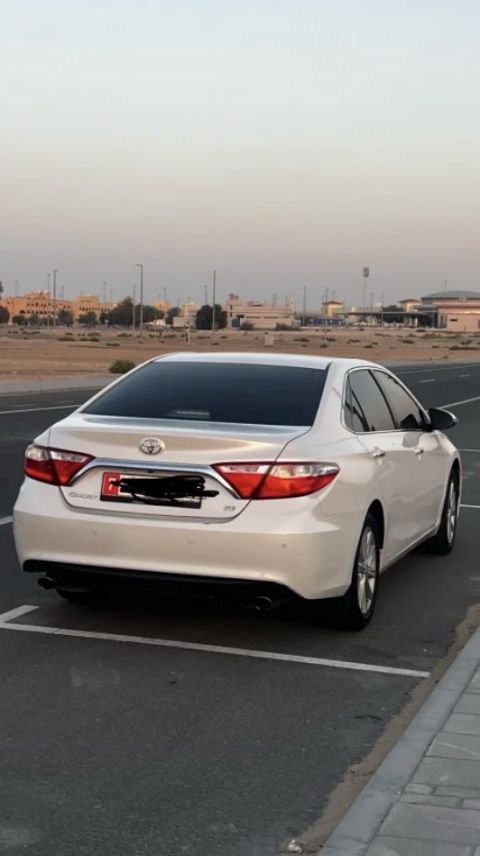 كامري 2017 SE، اللون أبيض لؤلؤي، للبيع. السعر المطلوب: 30,000 درهم إماراتي.