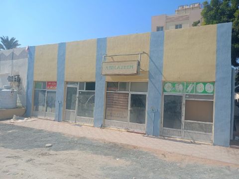 For sale in Ajman, a residential and commercial building in Liwara. 4 shops and an Arabic house. 4 bedrooms, 2 bathrooms, and a kitchen. Area 1600 SqFt. The house is on the street. asking price 900000 dirhams