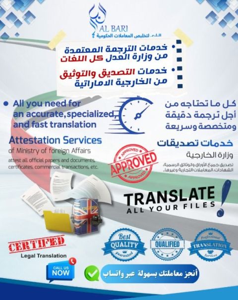 متاح ترجمة قانونية بأسعار مناسبة جدا في ترجمة الورقه من انجليزي لعربي والعكس سعر ترجمة الورقه 17 درهم بالاضافة الى الضريبة 5 ومتاح ترجمة اللغات الأخرى