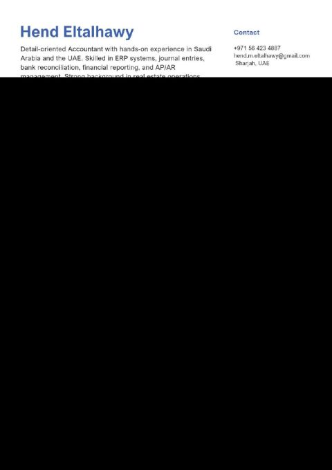 محاسب بدوام جزئي انشاء الأنظمة المحاسبية المتكاملة من القيود الافتتاحية حتى استخراج القوائم المالية، تحليل البيانات المالية والمحاسبية باستخدام Excel, Power PI, SQL لتحسين الأداء واتخاذ القرارات التجارية ووضع استراتيجية العمل، خبرة في استخدام برامج ERP المحاسبية لادارة الأنشطة التجارية والصناعية والشركات SAP B1، اعداد الاقرارات الضريبية، رخصة قيادة اماراتية، إقامة