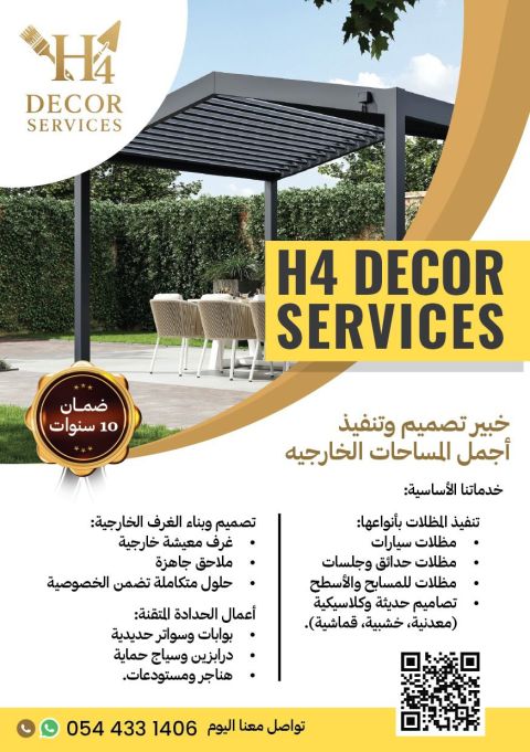 تصميم وتنفيذ مظلات سيارات وجلسات خارجية فاخرة - H4 DECOOR serves نوفر لك أجمل التصاميم الحديثة للمظلات والجلسات الخارجية بجودة عالية وتصاميم معدنية مميزة تجمع بين الفخامة والمتانة. مظلات سيارات - مظلات حدائق - جلسات خارجية تصميم وتنفيذ حسب الطلب خامات ممتازة مقاومة للحرارة والعوامل الجوية ضمان حقيقي لمدة 10 سنوات للتواصل والاستفسار عبر الواتساب أو الاتصال مباشرة