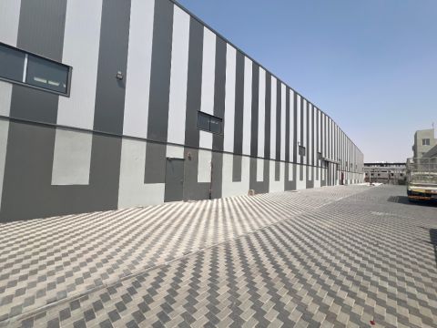 منطقة صناعية جديدة اجمالي الأرض 123400 قدم مربع / مبنى جديد ومستودع (600 قدم مربع / لكل منهما) 33 غرفة + حمام ومرحاض ملحق + مطبخ كبير وغرفة رسم 7 متاجر وغرفة + 350 كيلوواط كهرباء مطلوب، 2400000 مليون سنويا