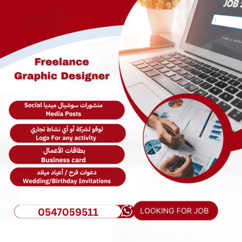 مصمم جرافيك خبرة أكثر من 5 سنوات متاحة للعمل بنظام بارت تايم وفل تايم