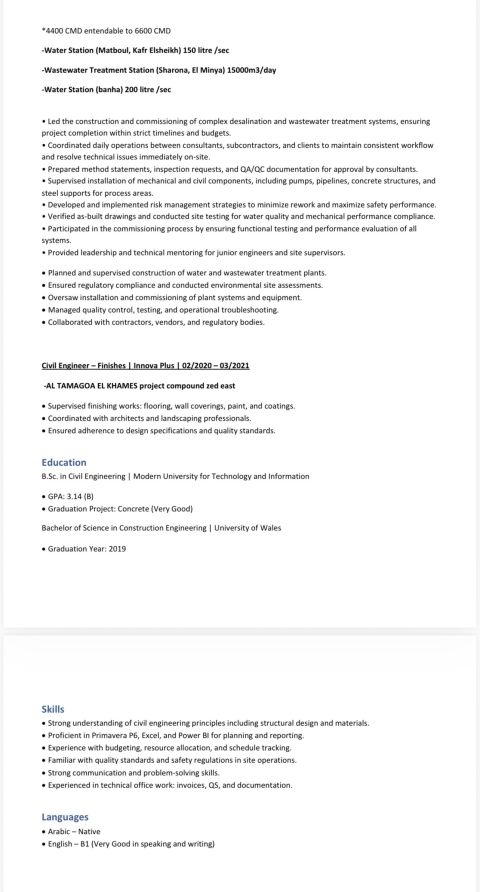 متواجد في الامارات أبو ظبي مهندس مدني خبرة 5 سنين في مصر تنفيذ محطات تحلية المياه ومحطات الصرف الصحي + خبرة سنة في مجال planning + خبرة سنة في الامارات في الانشاءات’ ابحث عن عمل مناسب تناسب خبرتي معيا إقامة سارية لحد 2028
