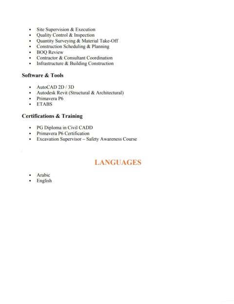 مهندس موقع مدني بخبرة 5 سنوات في الاشراف على مشاريع البناء السكنية والتجارية والتصميم الداخلي في دبي والعين. يتمتع بخبرة واسعة في الاشراف على المواقع، ومراقبة الجودة، وتنسيق المشاريع، وجدولة أعمال البناء. لديه قدرة مثبتة على ضمان الالتزام بالرسومات والمواصفات ومعايير البناء في دولة الامارات العربية المتحدة