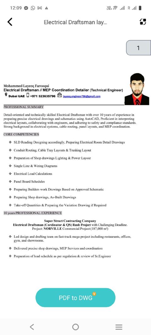 رسام كهربائي / مهندس تنسيق ميكانيكا وكهرباء ومياه (مهندس فني) دبي الامارات العربية المتحدة