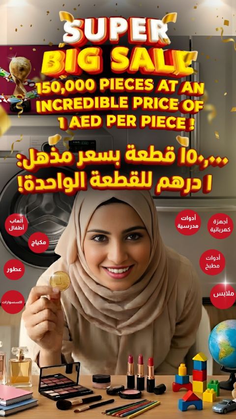 باقات ضخمة تبدأ من 150000 قطعة ملابس وأكسسوارات وكوزمتكس وعطور واداوت مطبخ وكهربائيات بسعر واحد درهم للقطعة فقط لأسعار تنافسية كميات كبيرة فرصة ذهبية للتجار وأصحاب المحلات يوجد قوائم تفصيلية للمواد مع الصور البضاعة متوفرة للمعاينة مباشرة لا تضيع الفرصة وابدأ تجارتك الآن