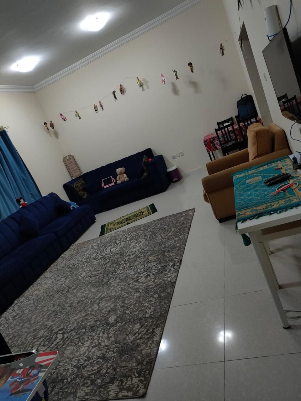Large apartment, one bedroom, a hall, and two bathrooms for monthly rent, Al Shamsi Building, on King Faisal Street, opposite Umm Al Quwain Hospital, including everything. To contact, call