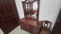 يتوفر أثاث غرفة نوم متميز يشمل خزانة وتسريحة وكمدينوا، وقد تم استخدامه لفترة قصيرة، مما يجعله خيارا ممتازة لمن يبحث عن جودة عالية وحالة جيدة. السعر المطلوب هو 300 درهم