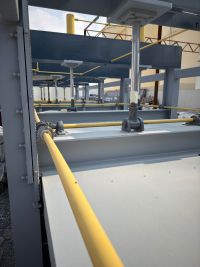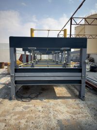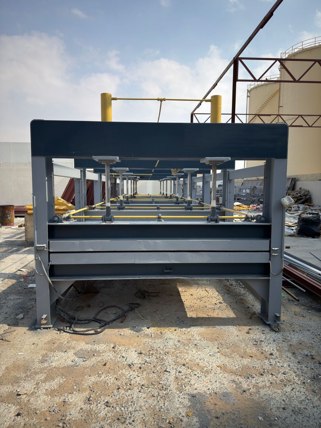 للبيع مكبس هيدروليكي لجميع أنواع ألواح السندويش بانل مواصفاته على النحو التالي مجهز ب 14 رافعة هيدروليكية عدد 2 بلاطات حرارية متحركة مع مواسير ستاينلس ستيل فولا ذية مقاومة للصدأ العرض الخارجي 2.8م، عرض اللوح 2.5م الطول الاجمالي 36م قدرة الضغط 100 طن لتصنيع ألواح السندويش بانل للجدران والأسقف وتصنيع جدران غرف التبريد ومناسب لألواح جدران السيارات