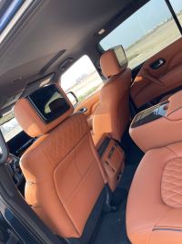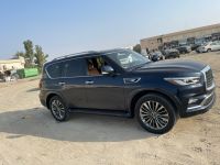 Infiniti QX80 2024 model, 8-cylinder engine, mileage 13,600 km. Features include: sunroof, lane departure warning, blind spot monitoring, rear sensors, front sensors, 4 cameras, 2 rear screens, center screen, front radar, electric tailgate, heated seats, seat controls, electric seats, rear electric seats, heated steering wheel. The car is very clean with absolutely no problems. Warranty on gearbox, engine, and chassis. Selling price: 140,000 AED. For contact.