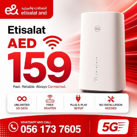 Etisalat Home wireless monthly Rental AED229 Discount for 3 months you have to pay 159 only Speed is upto 100 Mbps Free Unlimited data Free 5G WiFi Router Free Delivery No advance No deposit installation in 24 hours 1 years contract. This contract is one year you can cancel before One year you will pay one bill and AED66 charge each remaining months