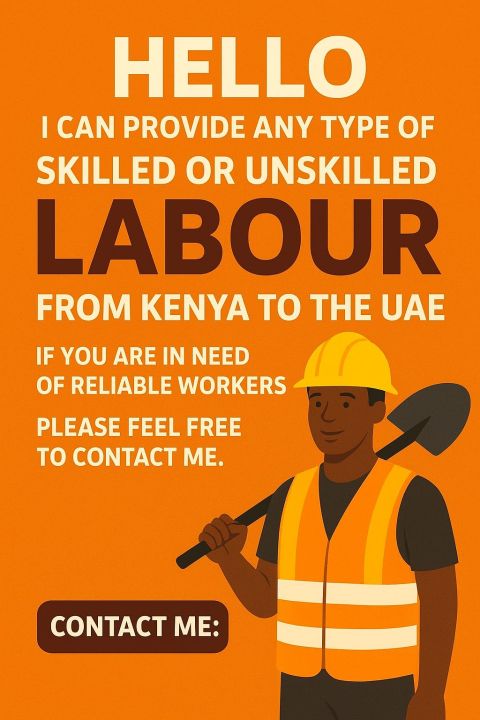 Hello, I can provide any type of skilled or unskilled labour from Kenya to the UAE. If you are in need of reliable workers, please feel free to contact me