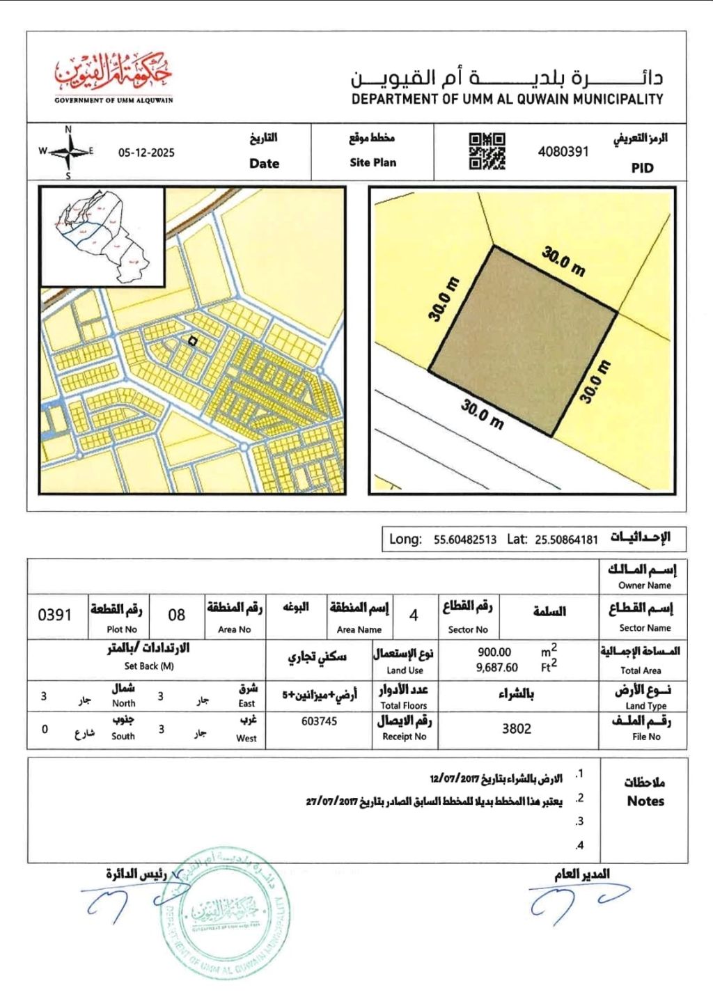 للبيع في أم القيوين أرض سكني تجاري بمنطقة البوغة المساحة 10 الاق قدم مصرح أرضي ميزانين 5 موقع ممتاز مطلوب 470 ألف درهم نهائي غير قابل للتفاوض للتواصل خليفة الساحب