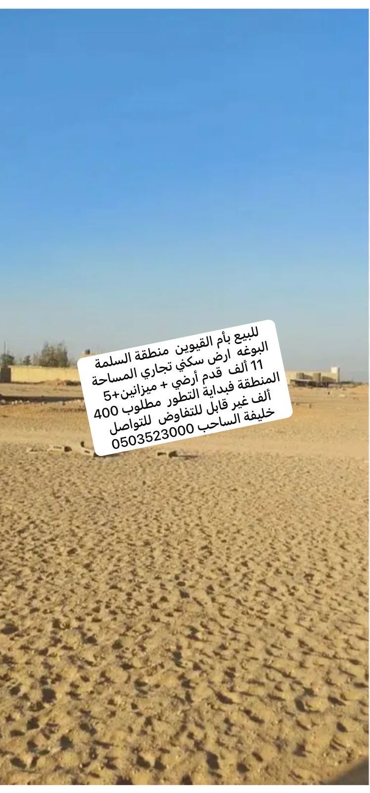للبيع في أم القيوين منطقة السلمة البوغه أرض سكني تجاري المساحة 11 ألف قدم أرضي + ميزانين + 5 المنطقة فبداية التطور مطلوب 400 ألف غير قابل للتفاوض للتواصل خليفة الساحب