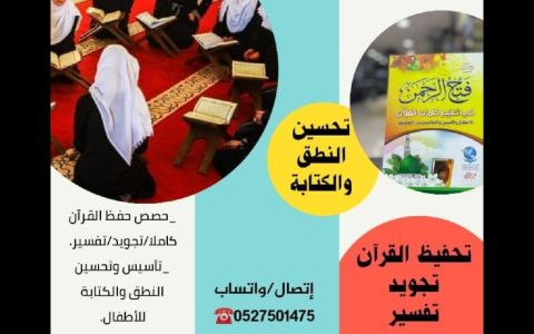 لحفظ القرآن الكريم بالاحكام التجويد وتأسيس اللغة العربية والتربية الاسلامية جميع المراحل التعليمية بأسلوب جديد ومحفز للطلاب