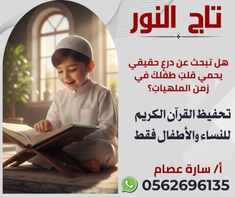 عايز ابنك يكون من قراء القرآن الكريم حابب يكون الصوت والأداء عنده متميزين نفسك يكون ابنك أو ابنتك موهبة فريدة وسط نجوم التلاوة المعتمدين معنا بإذن الله كل ده موجود على يد متخصص من كلية القرآن الكريم وخبرة أكثر من عشر سنين داخل الدولة وخارجها ابنك هيوصل لأعلى مستويات الحفظ والاتقان متاح أون لاين وحضوري (النهدة التعاون الخان الرولة النعيمية الحميدية الجرف واسط الملك فيصل جراند مول شارع الشيخ عمار