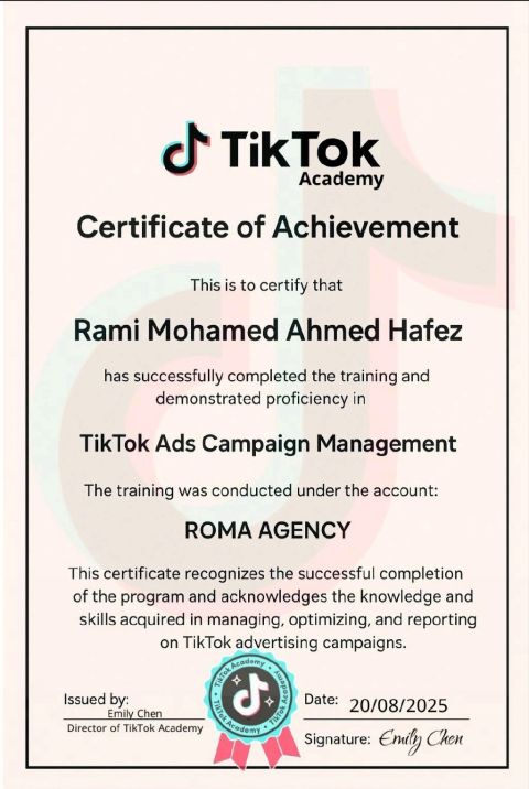 Social media Marketing Manager for freelance (remotely only) I am professional at working on all platforms, professional in filming and editing videos on montage programs, professional in sponsored campaigns, I have a work team in the Emirates and Egypt and I have a TikTok agency with bloggers