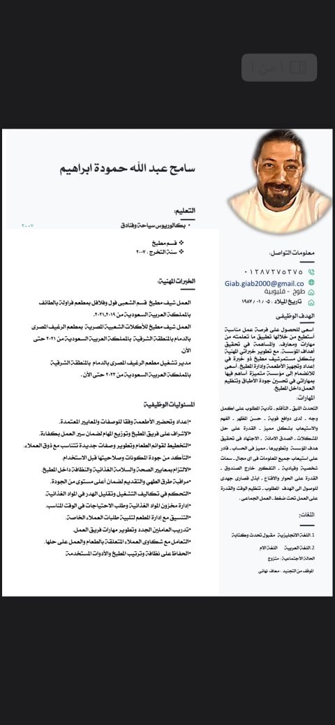 أنا شيف فول وفلافل شامل ألكبده والمكرونه ووالحوشي متواجد في عجمان لو متاح فرصة شغل