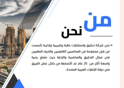 نقدم خدمات المحاسبة والمراجعة الماليه وجميع التقارير المحاسبية والهندسية والتقنية وجميع الاستشارات المالية والضريبية والاداريه من قبل مجموعة من المحاسبين القانونيين والخبراء المهنيين في مجال التدقيق والمحاسبة والادارة