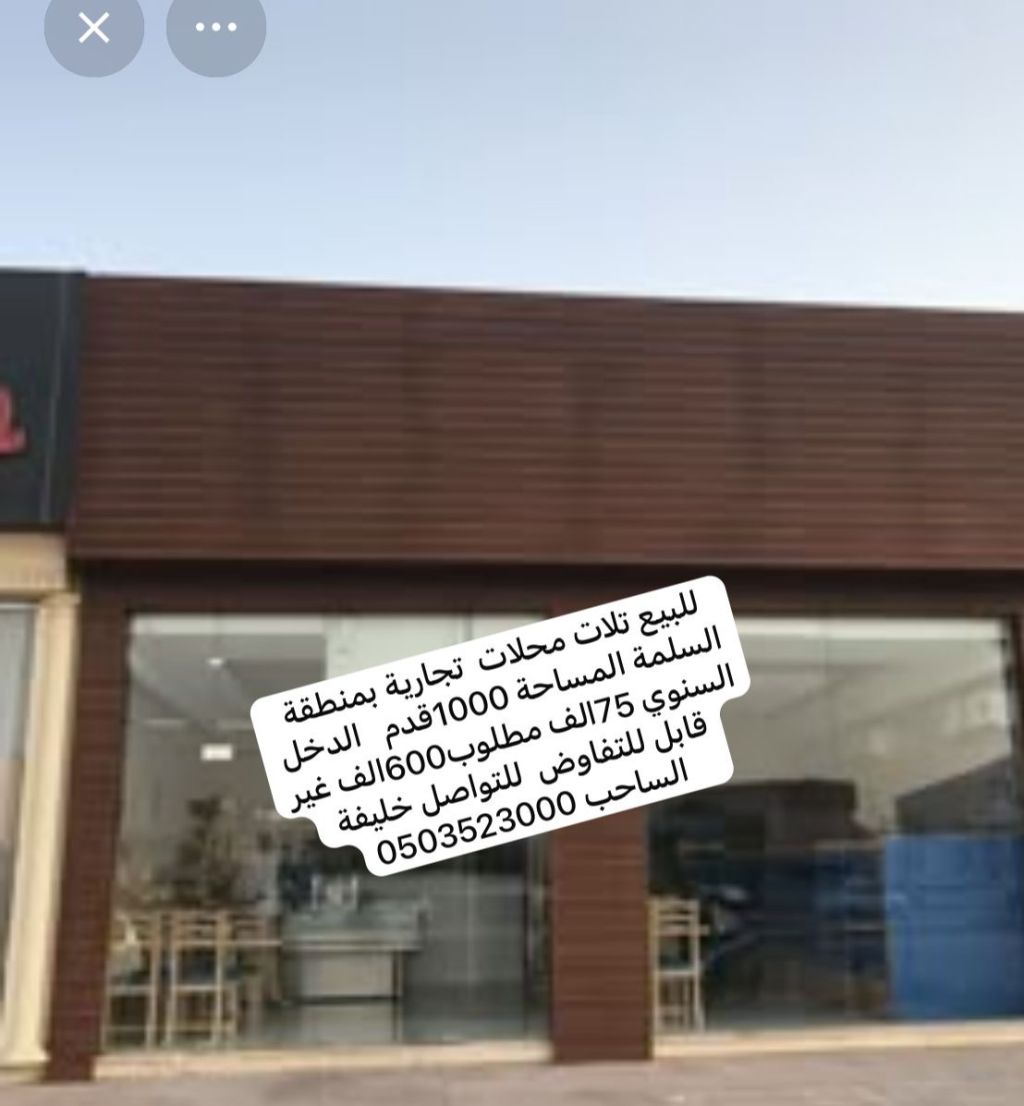للبيع ثلاث محلات تجارية بمنطقة السلمة المساحة 1000 قدم الدخل السنوي 75 ألف مطلوب 600 ألف غير قابل للتفاوض للتواصل خليفة الساحب