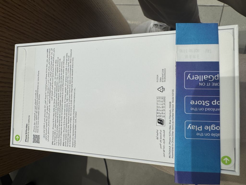 متاح آيفون 15 برو ماكس 256 أزرق تيتانيوم مقفول غير مفتوح نسخة TDRA السعر 3700