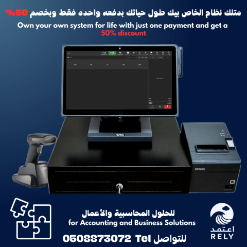 برنامج محاسبي. نقطة بيع لادارة مطاعم، كوفي شوب، صالونات تجميل، محلات الملابس، الهدايا أو الموبايلات سوبر ماركت، يحتوي على طرق بيع مختلفة (بنظام الأزرار / الباركود / الميزان الالكتروني) عدد غير محدود من المستخدمين مع تحديد صلاحيات مختلفة، اضافة مخازن وجرد الكميات. بسيط وسهل في التعامل مع توفير التدريب المجاني، وفترة ضمان. ويتوفر بنظام الإيجار الشهري أو السنوي مع دعم فني مستمر