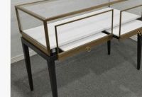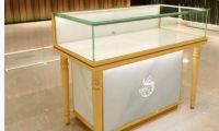 للبيع واجهة عرض حديثة للمجوهرات والساعات مزودة بزجاج شفاف، رفوف قابلة للتعديل، اضاءة LED، وتخزين آمن في القاعدة. مثالية لعرض منتجاتك بشكل احترافي وجذاب وتمنح متجرك مظهر أنيق وجاهز للاستخدام مباشرة