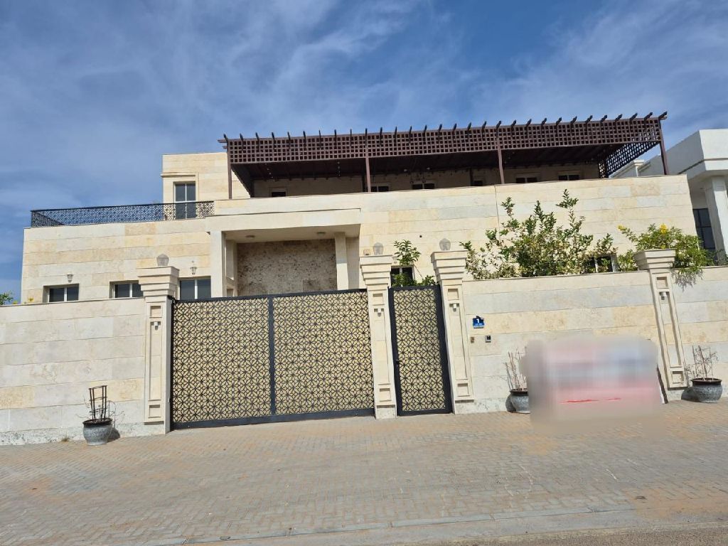 For sale Residential Villa, Location Shanteer - Umm Al Quwain, Area 10000 SqFt, Features Paved road - Nearby services, Age 6 years, Specifications 5 master bedrooms - Majlis - 2 living rooms - 2 kitchenettes - Maid's quarters - Large kitchen - Split AC - Shaded parking, Price AED2.3 million