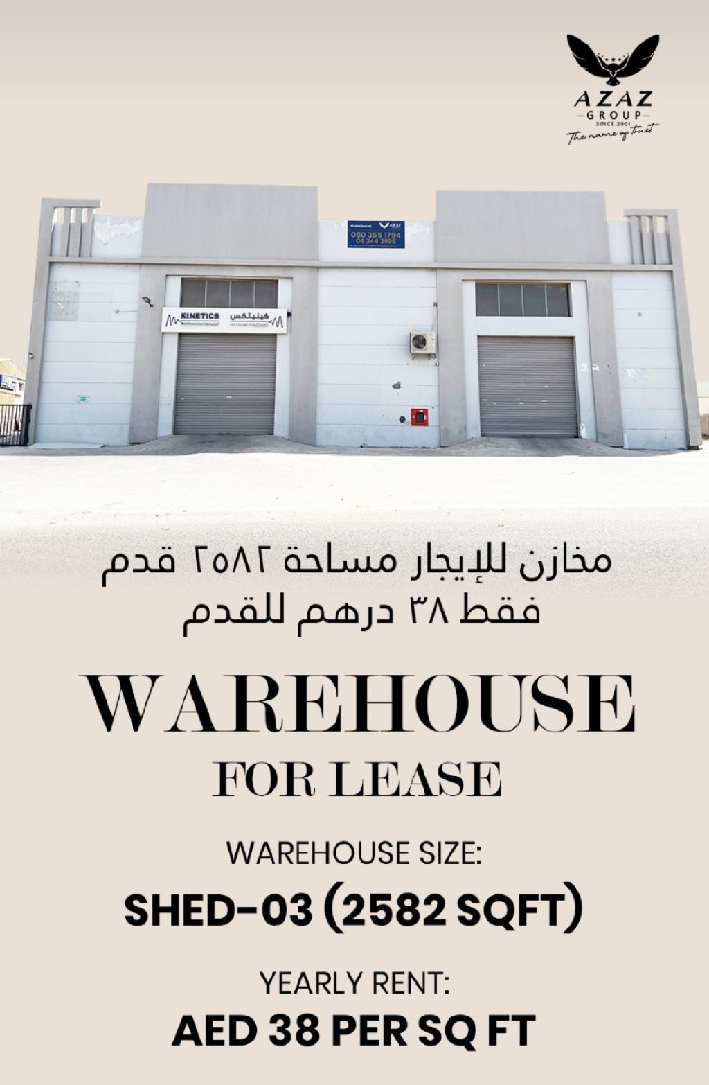 مستودع للإيجار في ام الثعوب صناعية أم القيوين الجديدة مساحة 2582 قدم بسعر 38 درهم للقدم كهرباء عالية وارتفاعات عالية