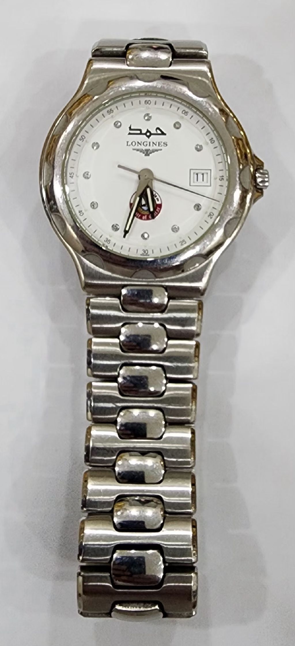 للبيع ساعة رجالية ماركة لونجين استعمال بسيط بحالة ممتازة. مميزة يوجد بها شعار دولة قطر. السعر 5000 درهم